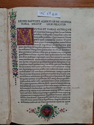 De re aedificatoria. Ed: Bernardus de Albertis. Add: Angelus Politianus: Epistola ad Laurentium Medicem. Baptista Siculus: Carmen ad lectorem