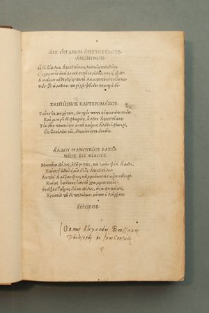 Argonautica [Greek]. With the Scholia of Lucillus, Sophocles, and Theon. Ed: Janus Lascaris