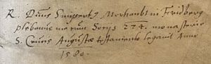 Ownership inscription of the Dutch politician and diplomat Cornelis van der Mijle. Inscription done by writing user's family name over former owner's, also named Cornelis.