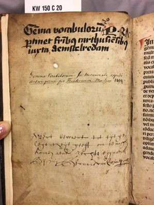 Modus legendi abbreviaturas. Add: Johannes Auerbach: Processus iudiciarius. Tractatus praesumptionum; Dominicus de Visentina: Summa qualiter notarii ... debeant officium exercere. Tractatus notariatus; Johannes Monachus: Defensorium iuris; Innocentius IV: Tractatus exceptionum; Dinus de Mugello: Tractatus praescriptionum; Petrus Jacobus de Montepessulano: De arbitris et arbitratoribus; Galvanus Salvianus de Bononia: Differentiae legum et canonum; Bartolus de Saxoferrato: De Tabellionibus