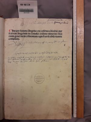 Summa angelica de casibus conscientiae. With additions by Hieronymus Tornieli